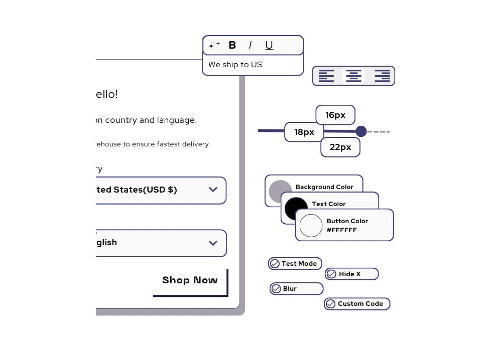 Enhance your business experience by recommending popups based on customers geolocation. Make it easy for international customers to shop. Localizing your website is now easier.